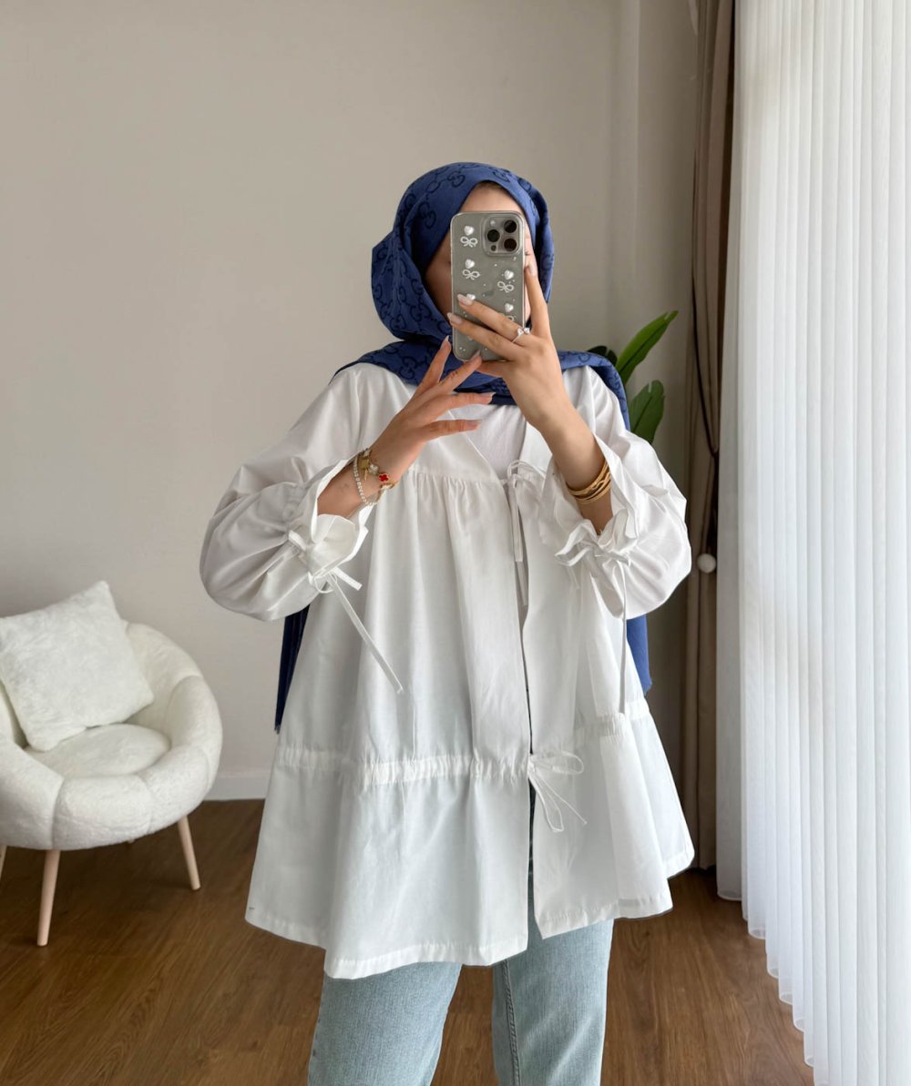 Büzgülü poplin Kimono Beyaz