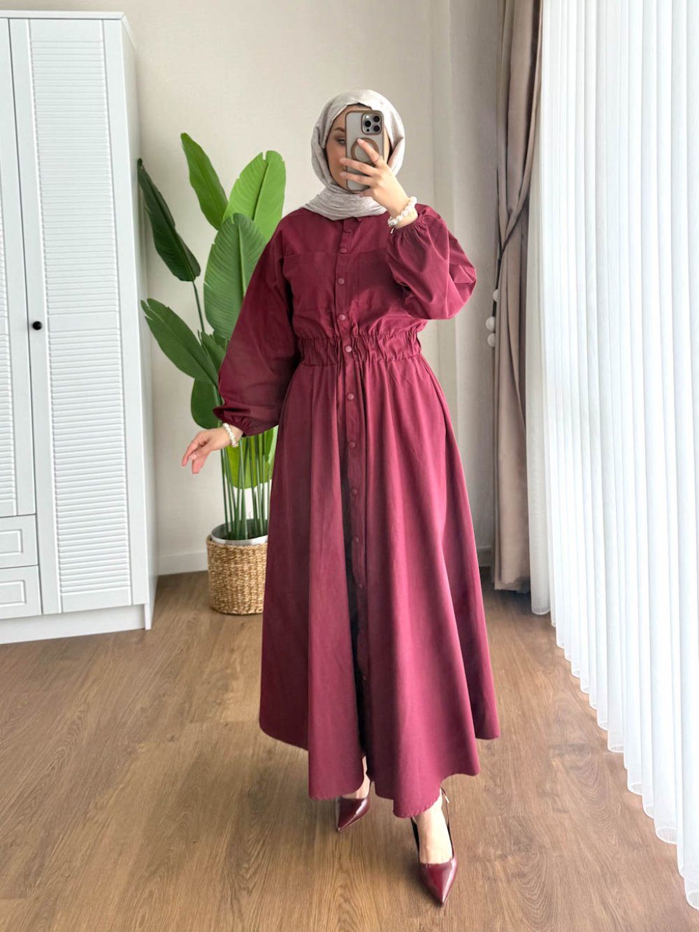 Çift Cepli ÇıtÇıtlı Elbise Bordo
