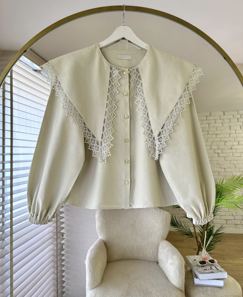 Dantel Yakalı Kısa Gömlek Yeşil