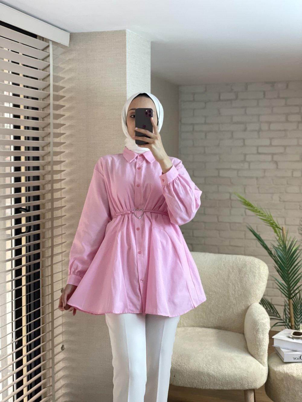 Kalp Kemerli Gömlek Pembe