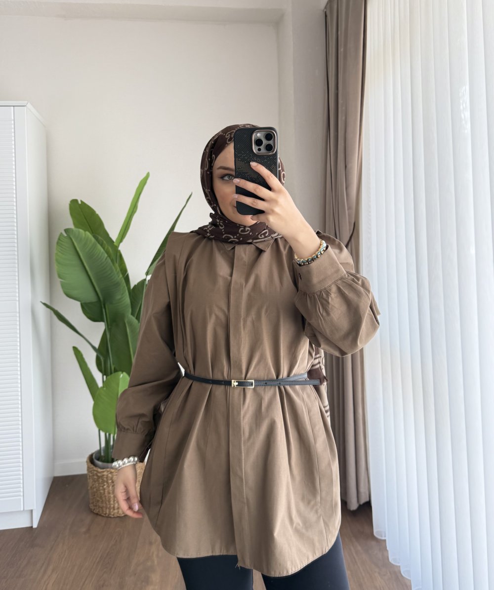 Omuz Volanlı Gömlek Kahverengi