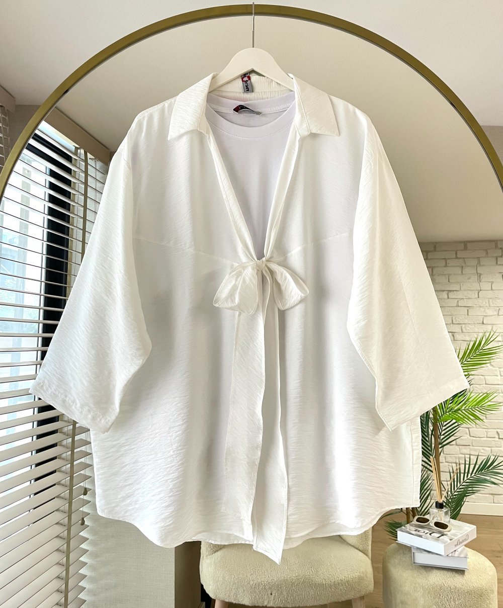 Önü Bağcıklı Kimono Beyaz