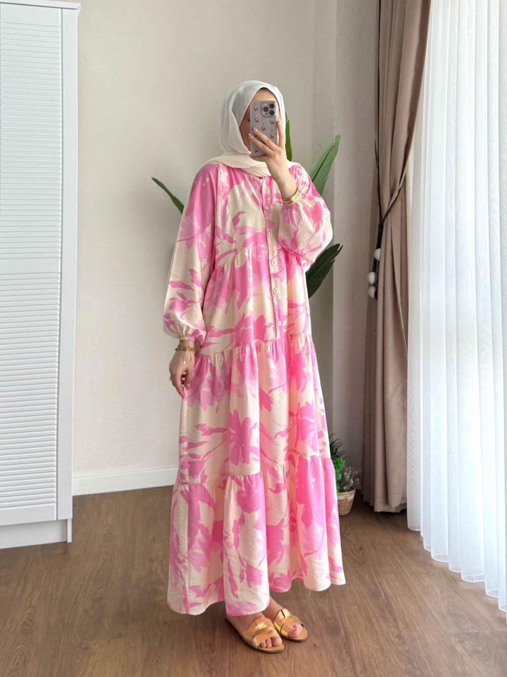 Parla Desenli Modal Elbise Pembe