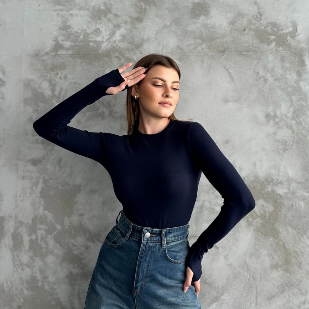 Parmak Geçmeli Body Lacivert