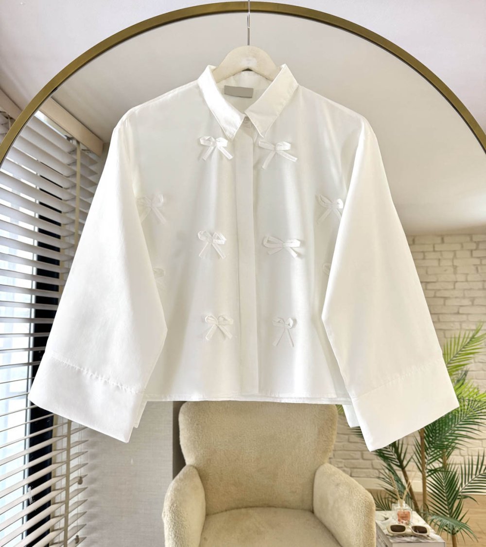 Ribbon Kısa Gömlek Beyaz