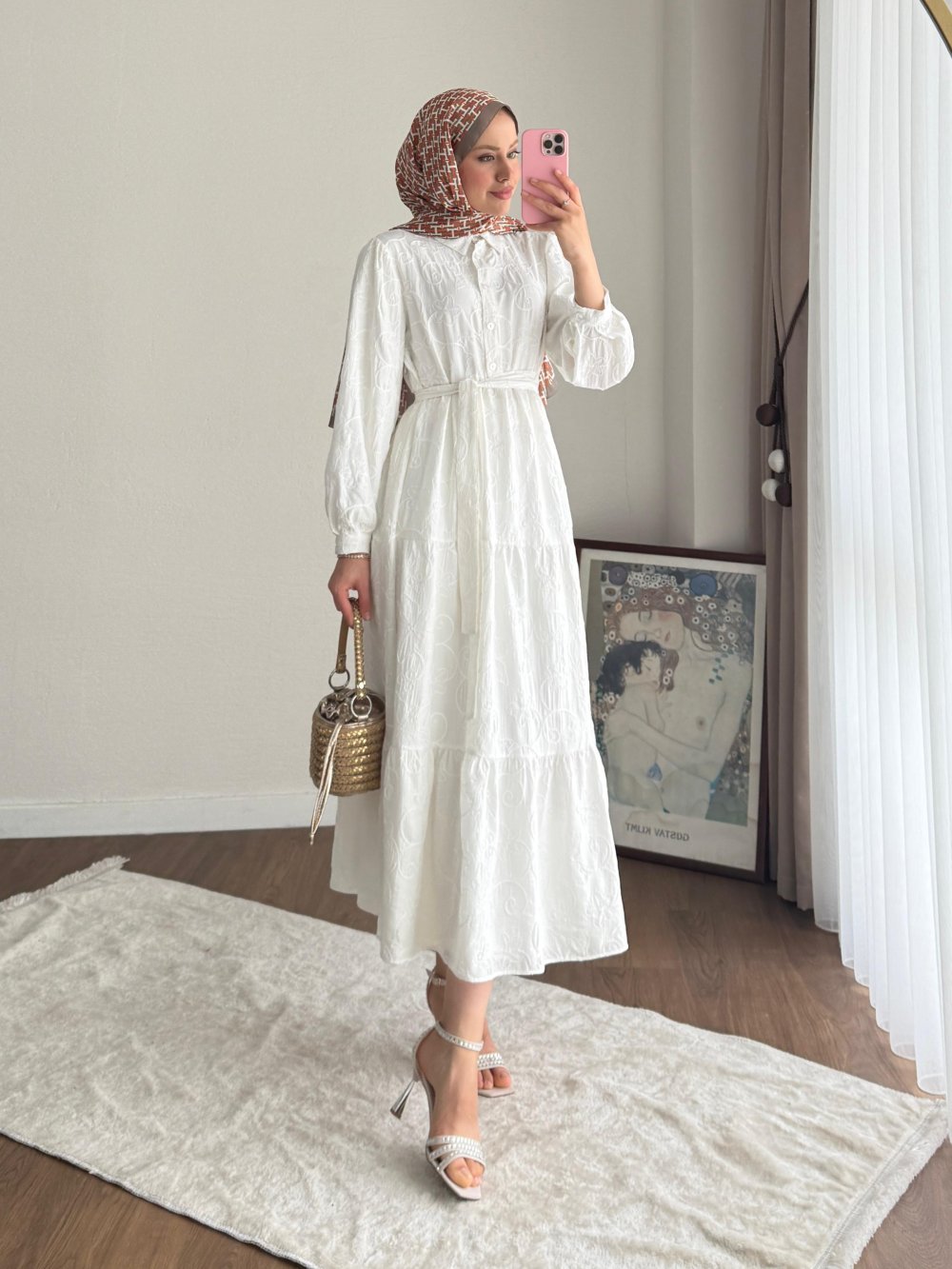 Semira Çiçekli Elbise Ekru