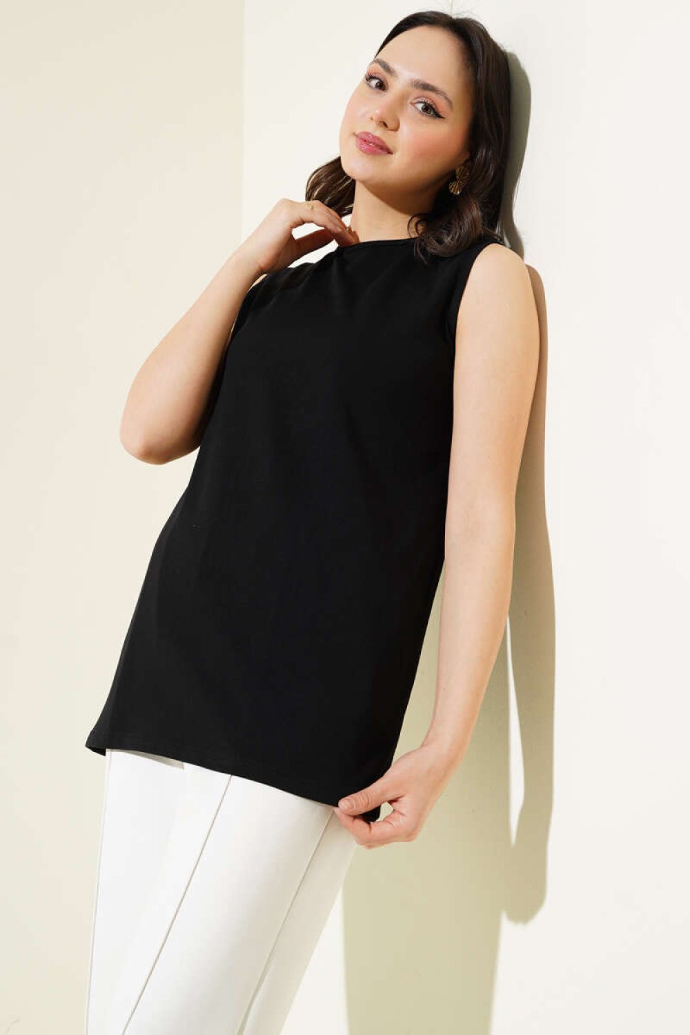 Sıfır Kol Bisiklet Yaka İçlik Siyah