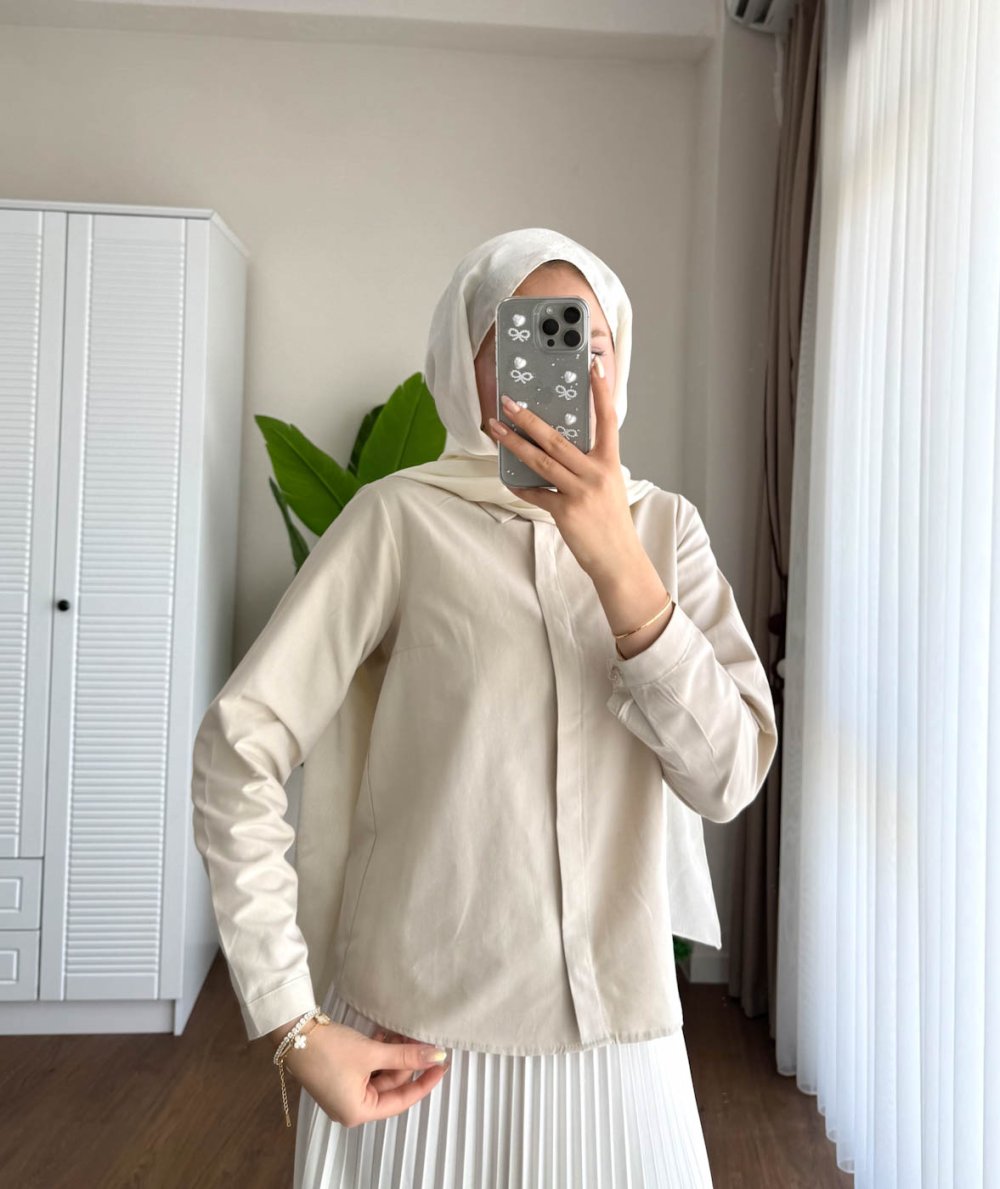 Slim Poplin Gömlek Bej